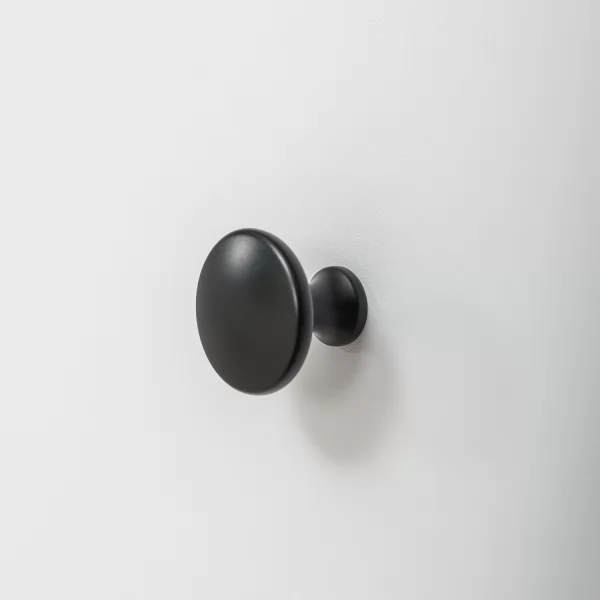 • Чёрная ручка-кнопка на фасадах выдвижных ящиков.