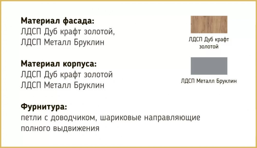 Цвет корпуса-Дуб Крафт Золотой, Металл Бруклин