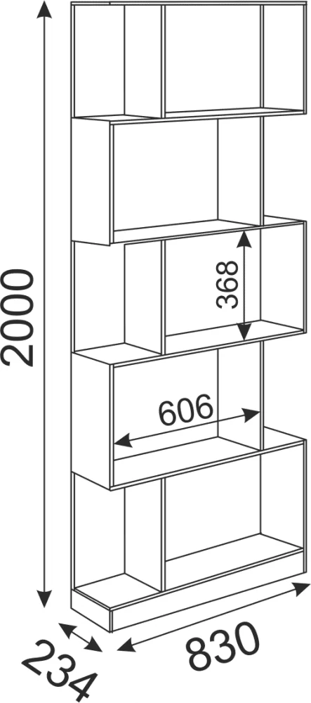 Размеры: Габарит ширина: 830 мм Габарит глубина: 234 мм Габарит высота: 2000 мм Расстояние между полками, мм: 368 мм