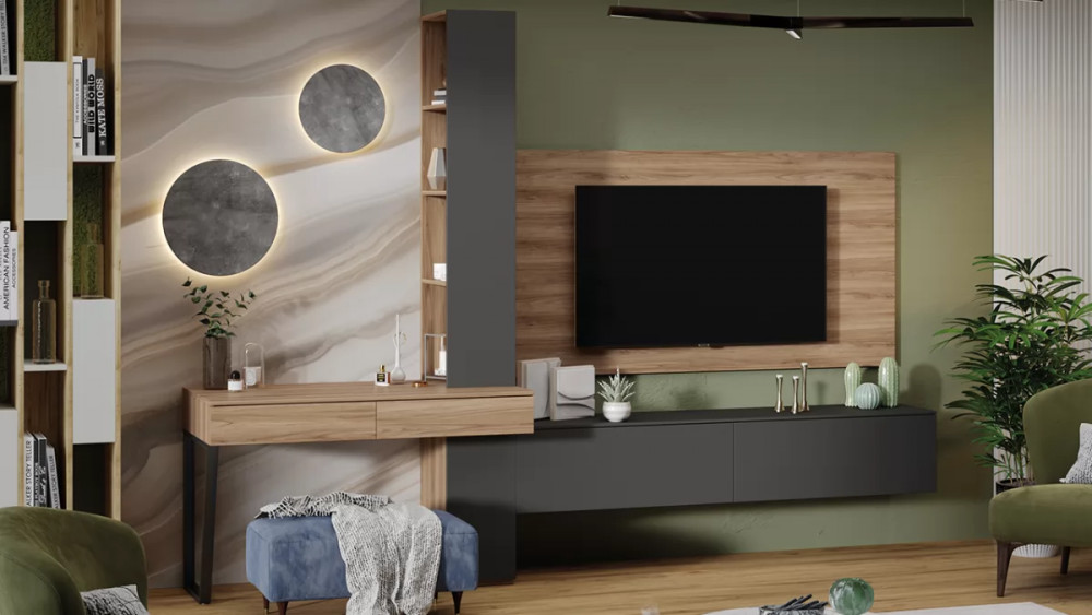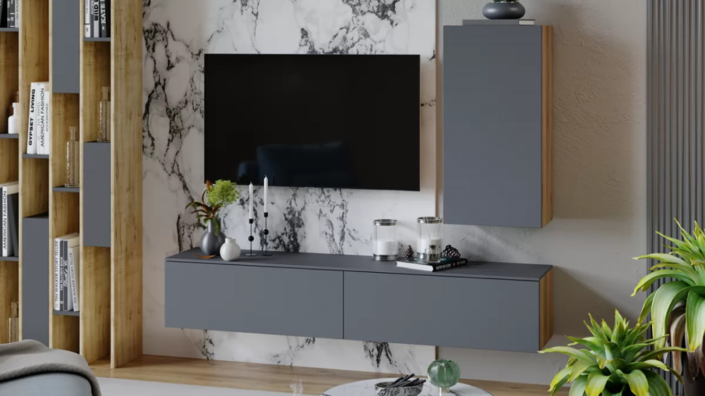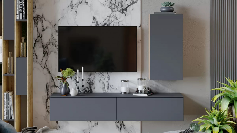 Модульная гостиная «Порто» Яблоня Беллуно, Графит софт в Новом Уренгое