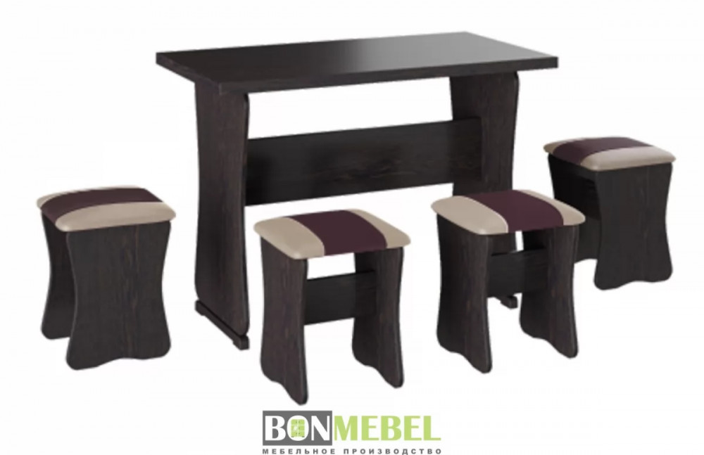 Обеденная группа с табуретами Тип-1 поможет организовать небольшую, но вместительную обеденную зону для четырех человек. Обивка из экокожи устойчива к различным загрязнениям и не требует обработки специальными средствами. Мягкие сиденья табуретов имеют мягкое и упругое наполнение, что повышает уровень комфортабельности. Различные варианты расцветки помогут подобрать идеальный комплект. Для изготовления изделий используется прочная ЛДСП. Обивка табуретов выполнена из искусственной кожи.