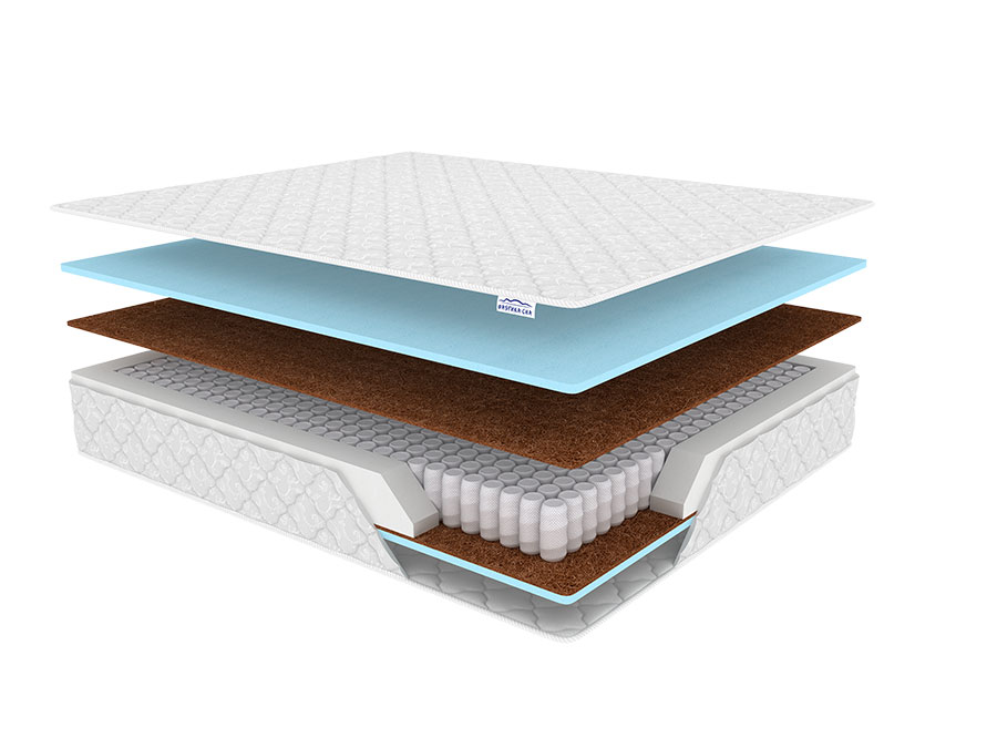 Серия: Sleep Высота: 20 см Нагрузка на спальное место: 130 кг Тип конструкции: Независимые пружины Степень жесткости: Средний Наполнитель: Био-кокос, Пенополиуретан Ткань: Трикотаж Чехол: Трикотаж на синтепоне Состав: Пенополиуретан - 2 см/Био-кокос 1 см/Блок независимых пружин/Био-кокос 1 см/ Пенополиуретан - 2 см
