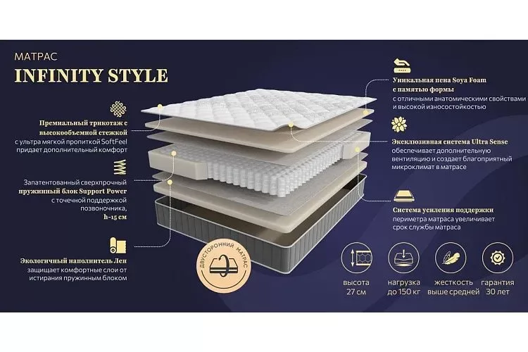 Матрас INFINITY STYLE 1800*2000мм (Пена/лен, жесткий, h 27см)