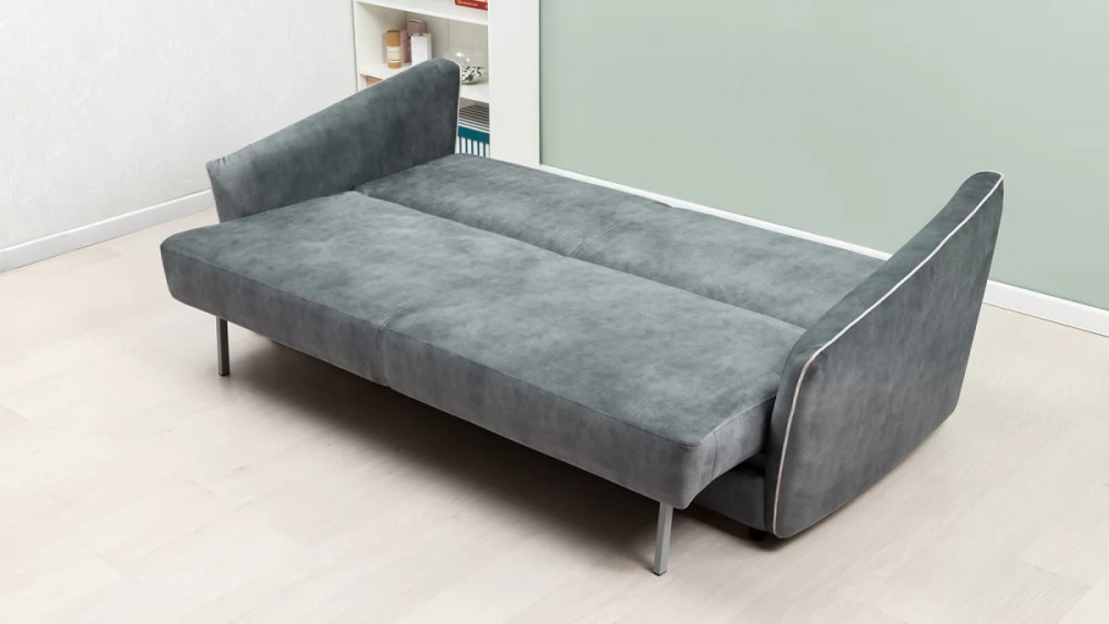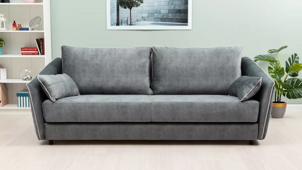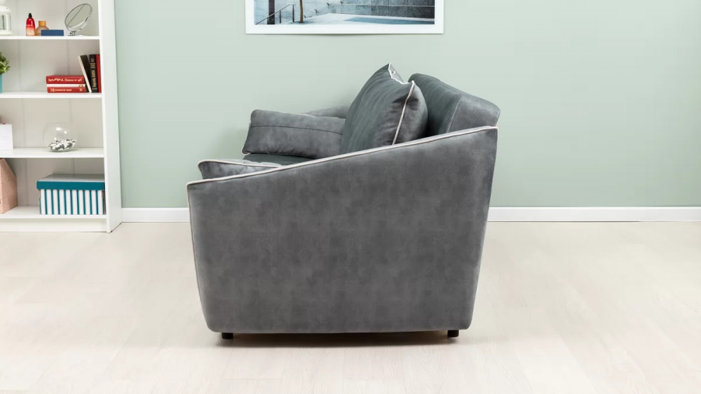 Габаритысложенный (Д x Г х В, мм): -2260 x 1090 x 920разложенный (Д x Г х В, мм): -2260 x 1340 x 750спальное место (Д x Ш, мм): -1980 x 1340высота посадки (мм): -445глубина сиденья (мм): -600высота спинки (мм): -560высота подлокотника от сиденья (мм): -150-300максимально допустимая нагрузка: -240 кг на диванМеханизм трансформации-Книжка с 0 стенойБельевой ящик-есть с перегородкой по центру (2 отделения)размер отделения (Д x Ш, мм): - 890 x 840 x 140Материалыосновная ткань: Greta (велюр)выполняется в тканях: Greta Grafit (серый)/Greta Bone (слоновая кость)каркас: фанера-деревянный брус ДСП ДВПприспинные подушки, шт: -2съемные чехлы приспинных подушек: -естьдекоративные подушки, шт: -2наполнитель подушек: -крошка ППУ и полиэфирное волокно «шарики»цвет опор: -Опора регулируемая, круглая, чернаявысота опор (мм): -60Декор-Подлокотники с выраженным контрастным кантом по внешнему контуру изделия. Декоративные подушки оформлены декоративной отстрочкой «зигзаг».