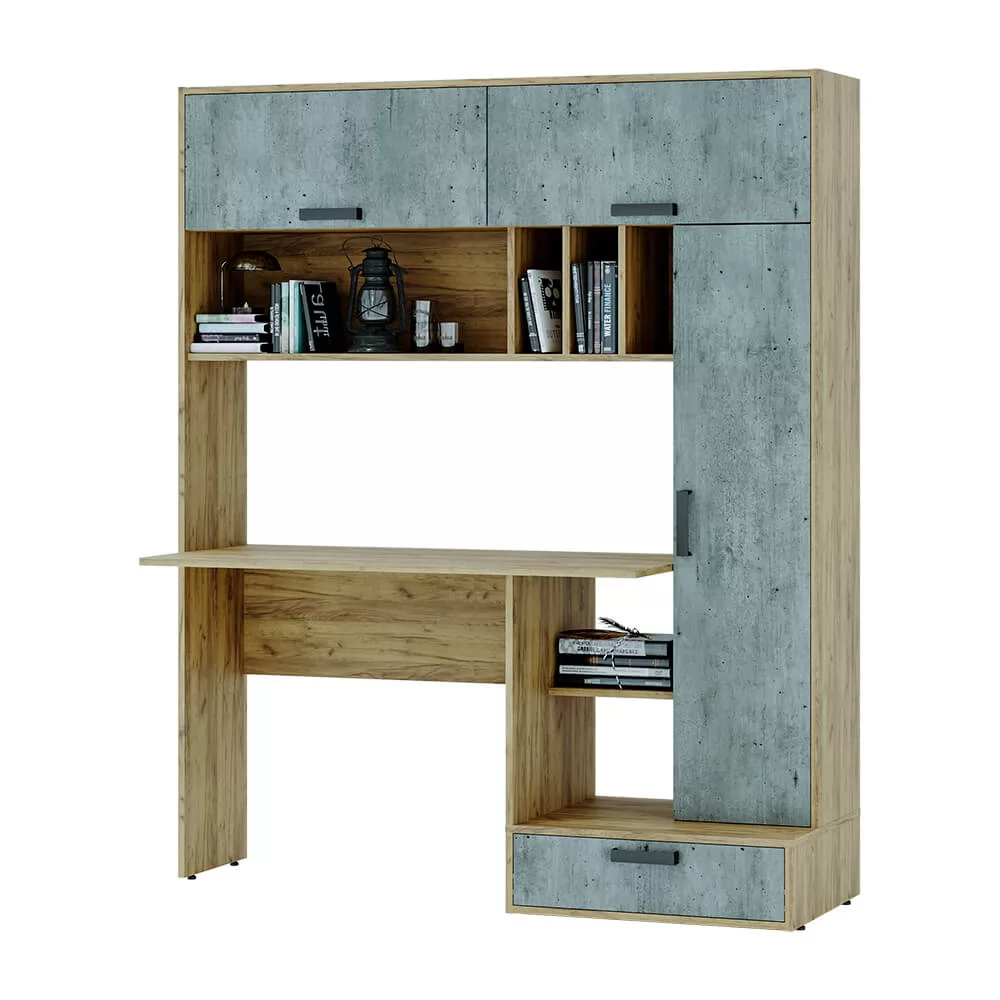 -в комплектацию входит столешница, верхние и боковые ниши, спрятанные за дверцы, нижний выдвижной ящик и открытые полки, -разместить необходимые предметы, включая технику, не составит труда, -цветовое решение позволит модели вписаться в современный интерьер, особенно в стиле лофт.