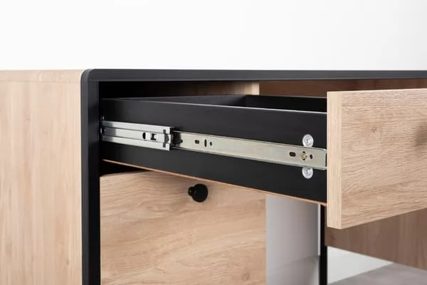 Каркас из металла, столешница из МДФ с закруглением и тактильно приятные металлические ручки с накаткой – визитная карточка модели.