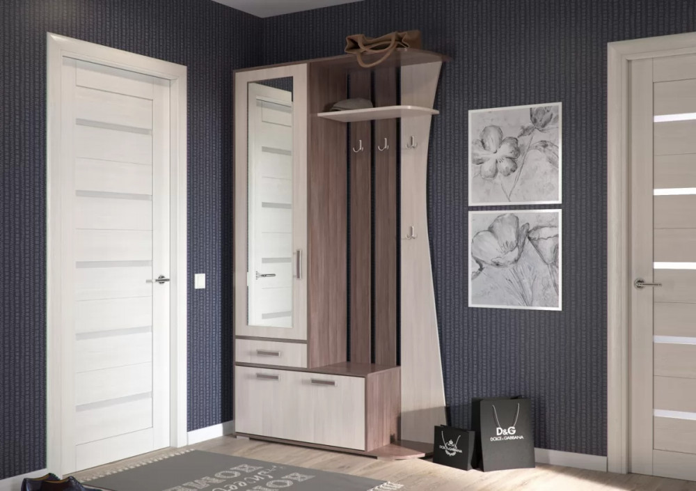 Компактная и стильная прихожая «Мокко» выполнена в трех современных сочетаниях цветов: «Бодега» тёмный/светлый, «Дуб Кельтик». Не смотря на свои компактные размеры, прихожая «Мокко» обладает хорошей функциональностью: штанга и крючки для одежды, выдвижной ящик для мелочей, обувница и две полки.