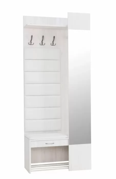 Ширина (мм): 800 Высота (мм): 2000 Глубина (мм): 350 Цвет: Винтерберг/Люкс Милк Материал: ЛДСП/Зеркало Вес, кг: 48 Объем, м3: 0.12 Коллекция: Ольга-Милк Стиль: Современный Размер зеркала: 296х1450 мм Корпус — ЛДСП 16 мм Кромка ПВХ 1 мм Направляющие — шариковые Металлическая фурнитура Зеркало с фацетом Мягкий элемент — экокожа (Люкса Милк) Полка для обуви Регулируемые опоры