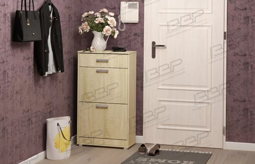 Обувница «Обувница №2» с двумя откидными ощиками для обуви и компактным ящиком для мелочей в прихожей зоне.