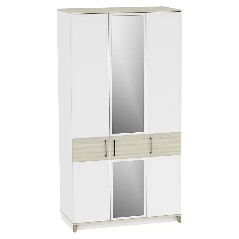 Изысканность стиля подчеркивает тонкий фигурный профиль на фасадах, верх и низ модулей выполнены в древесном декоре, а скошенные опоры из МДФ добавляют мебели в стиле неоклассика из коллекции AURELIO нотку современной эстетики. Петли с доводчиками - для комфортного открывания / закрывания дверок шкафа. Задняя стенка шкафа в древесном декоре устанавливается в паз, поэтому выглядит аккуратно со всех сторон.