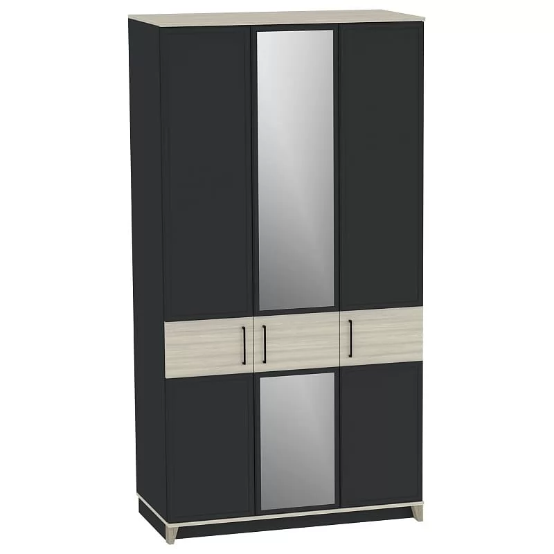 Ширина (мм): 1200 Высота (мм): 2308 Глубина(мм): 600 Материал: ЛДСП Цвет: Белый-Блеквуд Сатиновый,Антрацит-Блеквуд Сатиновый Металлические ручки Рамочные фасады из профиля МДФ Полки регулируемые по высоте