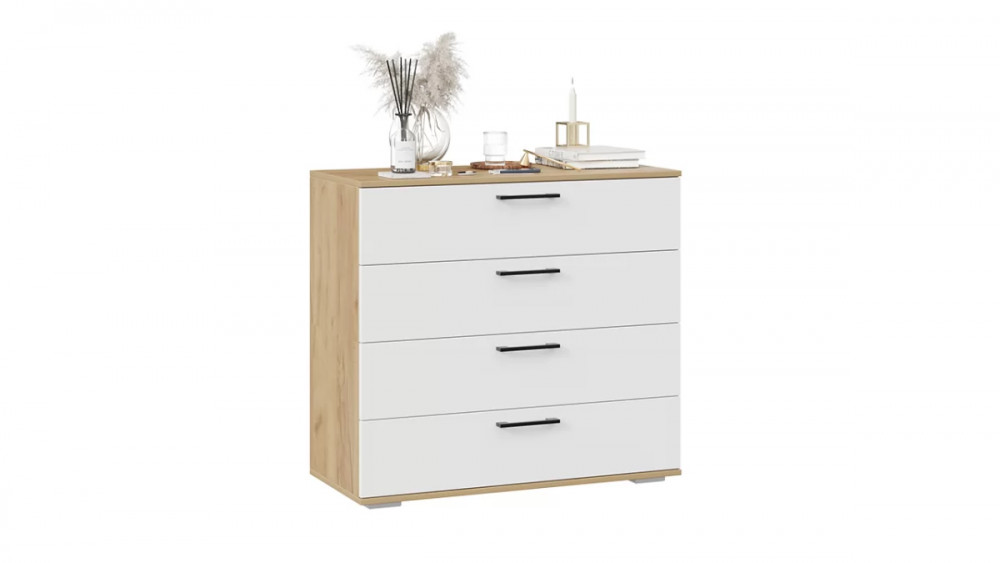 Назначение: Мебель для хранения Гарантийный срок: 24 месяца Комната использования: Спальня Материал кромки каркаса: ПВХ Цвет ручки: Черный Стиль: Современный Тип: Комод Расположение: Напольный Тип направляющих ящиков: Шариковые Материал каркаса: ЛДСП Материал ручек: Пластик Производство: Россия Габаритная ширина: 920 Габаритная высота: 842 Форма предмета: Прямоугольный Габаритная глубина: 411 Количество ящиков: 4 Модель: Нео Срок службы: 5 лет Материал фасада: ЛДСП Оттенок: Светло-коричневый, Белый Цвет: Дуб Крафт золотой, Белый Цвет каркаса: Дуб Крафт золотой Цвет фасада: Белый (поры дерева) Оттенок каркаса: Светло-коричневый Оттенок фасада: Белый Заглушина для ящика кровати в комплекте: Нет Наличие механизма раскладки: Нет Наличие спального места: Нет