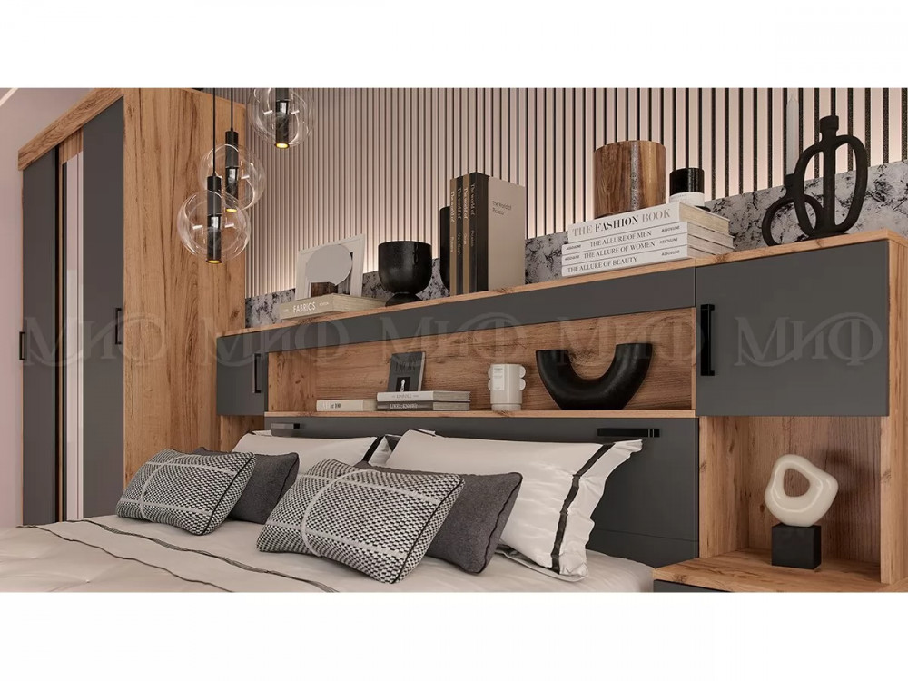 Спальный гарнитур Басямиф, графит/дуб крафт в Новом Уренгое