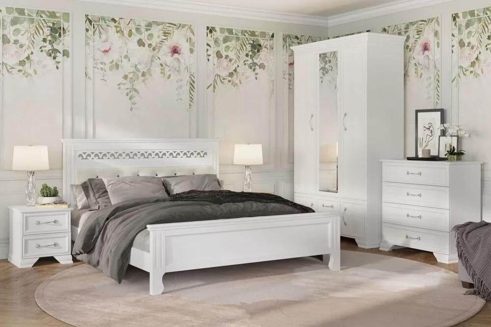 • Грация-1 Кровать с декором 1600х2000 с ортопедическим основанием Белый античный